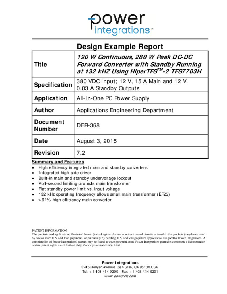 规格 设计类型 设计示例报告(DER) 拓扑 飞回来 rohs? 是的 VOUT 1 1215.00 v VOUT 2 12.83 v vin(最小) 380 CV/CC 简历 孤立? 是的 输出数量 2 输出功率 190.00 w 相关零件 TFS770 Gerber文件 rd368gerber.zip