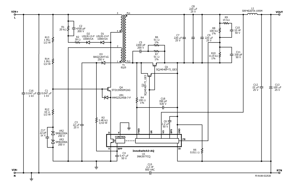 DER-859Q-使用Innoswitch3-AQ的30-925 VDC输入的800 V巴士的30 W电源