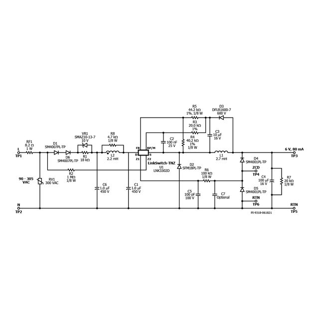 0.48 W非隔离电源,用于家庭和建筑自动化,使用LinkSwitch-TNZ (LNK3302D)无损产生交流过零信号