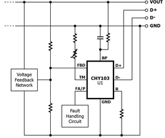 CHY103인터페이스IC는출력전압조정을활성화하기전에연결된PD가快速充电3.0또는快速充电2.0을지원하는지여부를자동으로감지합니다。快速充电2.0또는3.0과호환되지않는PD가감지되면CHY103은출력전압조정을비활성화하여기존의5 v전용USB PD를사용한안전작동을보장합니다。